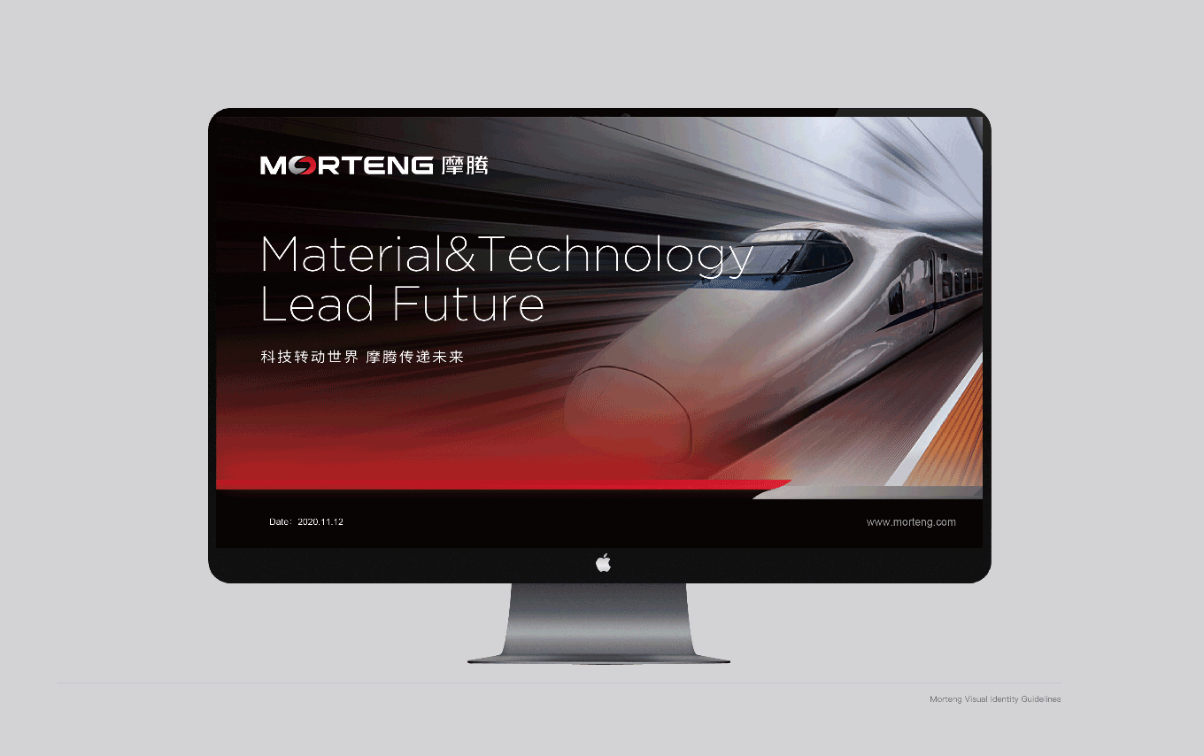 MORTENG 英文字體標識,將字母“O” 作為主要識別點,形成了一個無限循環轉動的環形,其不僅具有摩騰科技的產品屬性——象征滑環、碳刷等產品的運作特性;其次,圖標的負形也巧妙地形成了“能源符號” 的圖形感,象征著摩騰在風電、傳動、線纜等能源科技領域所具有的“無限能量”。在顏色上也選用“能量感” 極強的紅色作為主要識別色,使摩騰品牌在行業領域中脫穎而出。